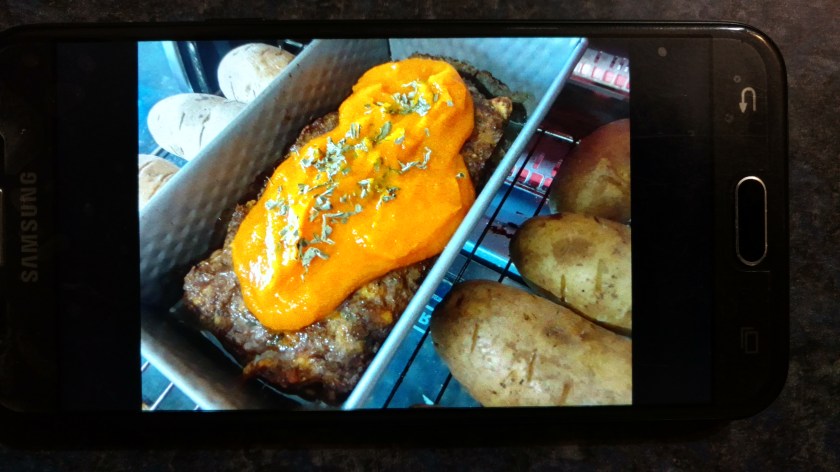 DISHING ON THIS DISH: Kind of funny, but I switched phones while starting this blog and so many photos of my dishes were on my old phone. I wasn’t able to email them to myself (without swapping SIM cards) so I figured I’d take a pic of my pic. I forgot to edit out my cell phone. Oh well. The meatloaf is absolutely as good as it looks. Enjoy!